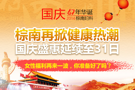 在国庆期间, 院隆重举办“棕南健康盛惠”活动,推出38元妇科检查套餐,借与蓉城百姓共庆祖国67年华诞之际,让女性朋友及早发现潜在的健康危险因素。